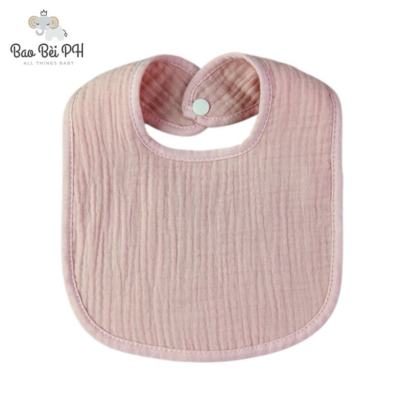 This bib has a U-shaped design. It has a secured snap to ensure it won’t come off easily. Easy absorption of liquids.