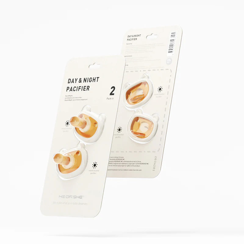Day & Night Pacifier aims at giving babies all-round oral comfort and cute all-in-one styling, protecting babies and giving babies mother-like care. Designed with round head for breast-like feeding during the day and flat pacifier for nighttime use, it matches baby's bite angle to prevent dental and facial issues.