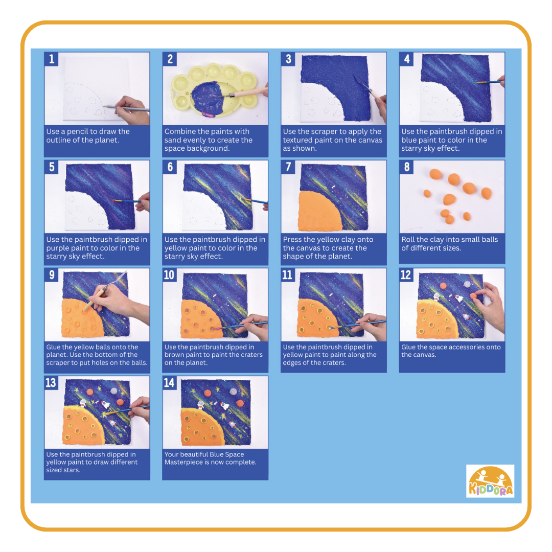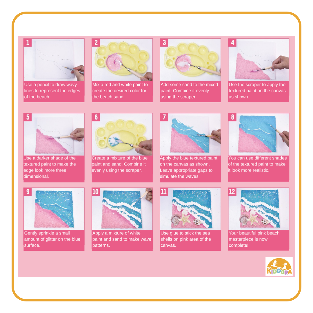 Let kids explore creativity with the Art Kids Texture Painting Set! Using multi-textured materials, they can build vibrant masterpieces while improving motor skills. Mix the paint with the sand, add the included accessories and sprinkle with glitters to make your masterpiece life-like.