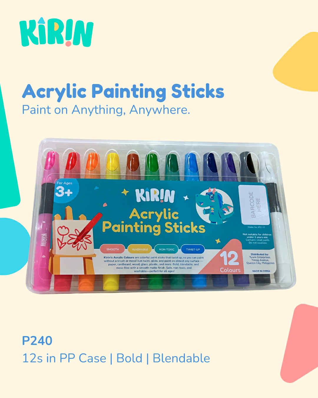Acrylic Colours 12s (Pink, Red, Orange, Yellow, Brown, Green, Olive, Light Blue, Drak Blue, Purple, Black, White)