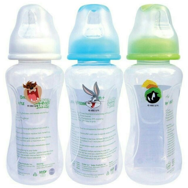 Tender Luv Looney Tunes 8oz Streamline Feeding Bottle Slim Neck Set of 3 BPA FREE
